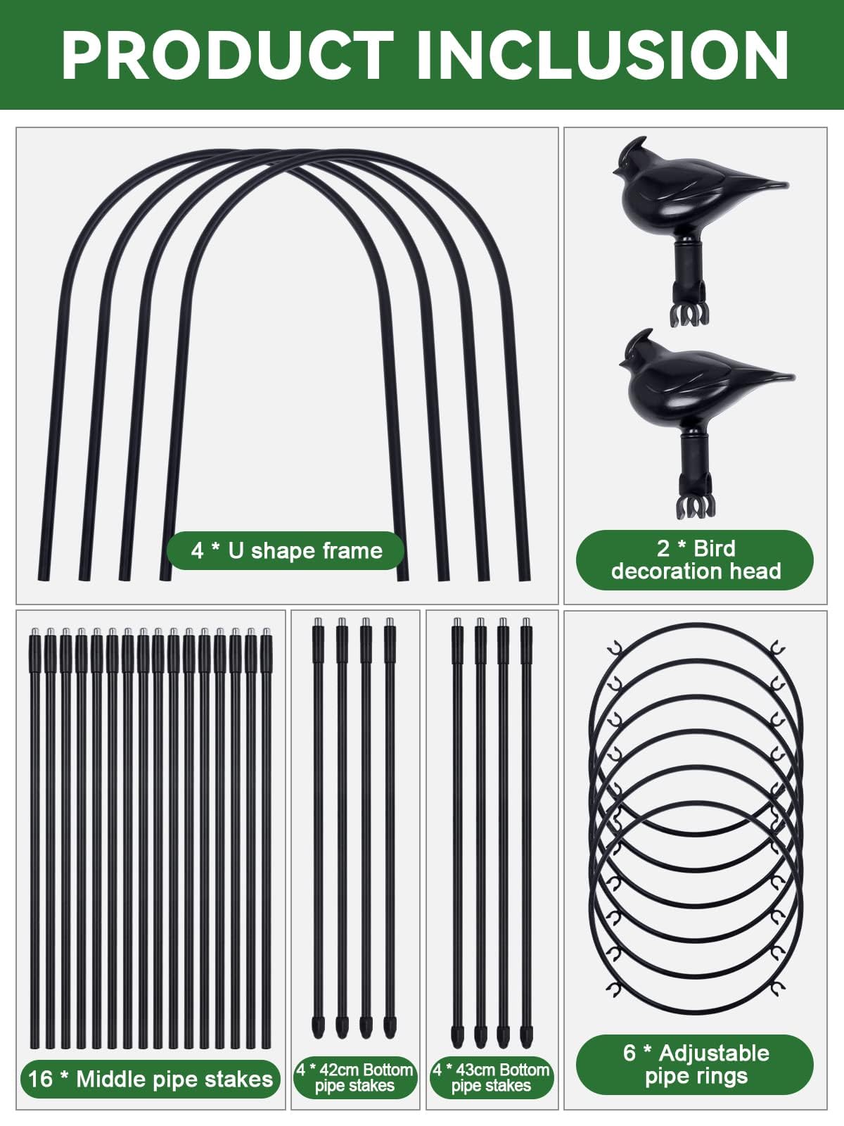 - ? Sturdy Anti-UV Material: Kalolary garden arch trellis is made of premium stainless steel, no worry about rain. In order to better install, the bird head and pipe ring are made of quality flexible plastic, but it can be used for a long time even under the sunshine, please no worry about it. And the sharp bottom stakes ensure that the garden tower trellis can insert into the soil easily, no worry about it will fall down easily.