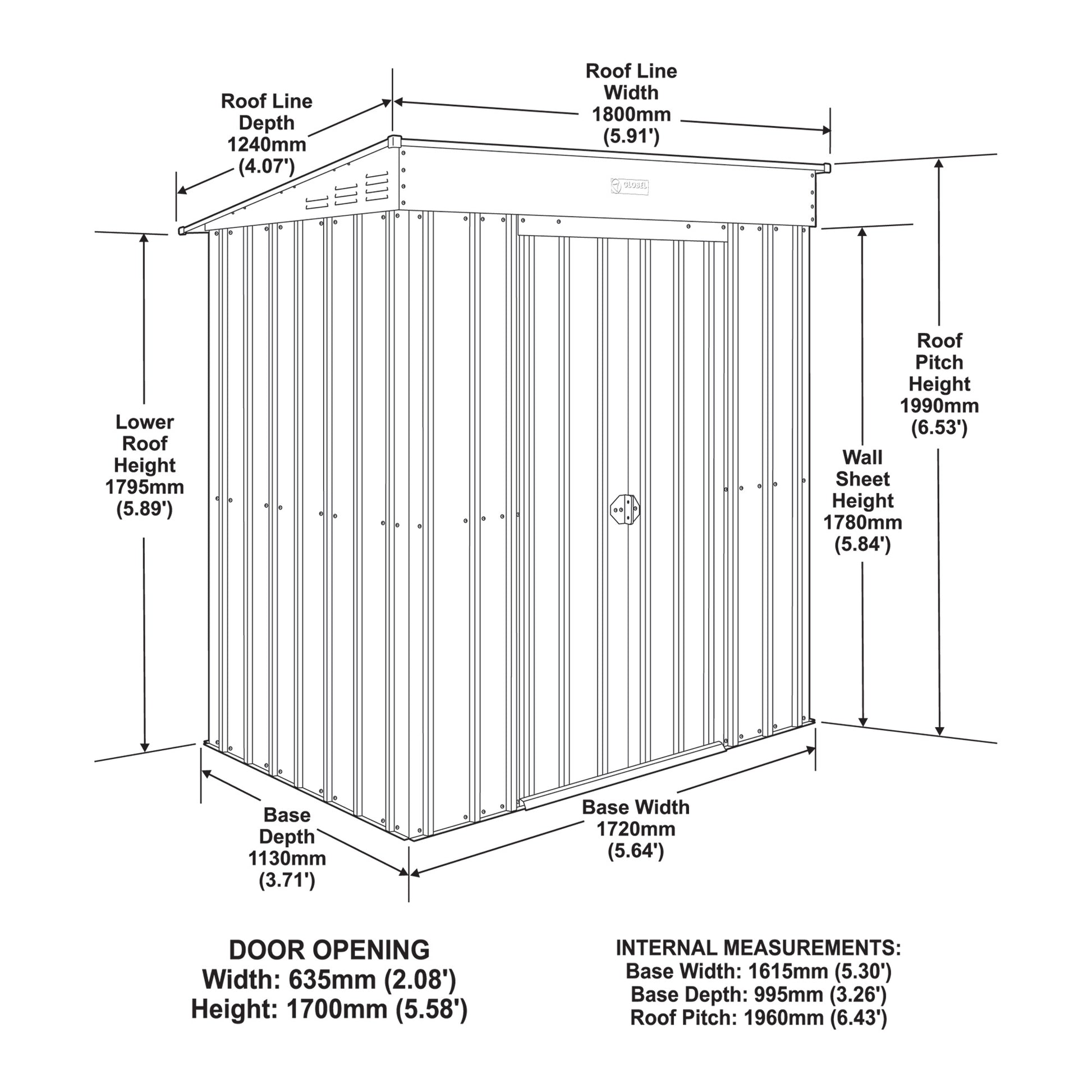 6 x 3 Globel Pent Metal Shed - Green or Grey