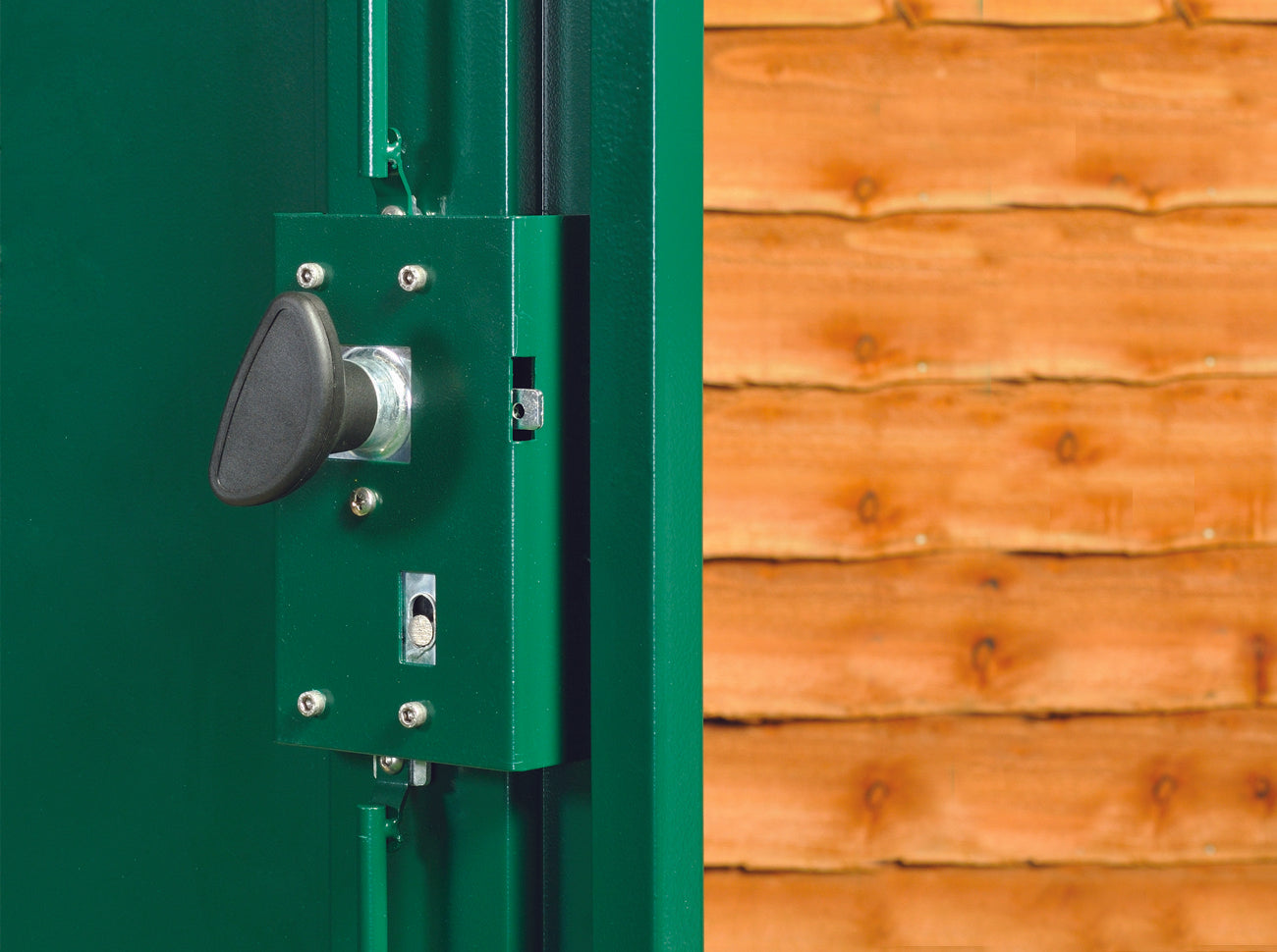 Keeping your valuables and expensive items secure, the Gladiator comes with a fantastic 5 point (pick and drill resistant) locking system and features a deadbolt system inside. Other security features of the Gladiator metal shed include; heavy-duty - reinforced doors, welded hinges and heavy-duty panel construction. As with all our high-quality metal sheds, the Gladiator range of sheds feature a series of ventilation holes in the roof eaves, providing airflow inside the unit – reducing condensation inside. Keeping your tools not just safe, but also dry. An integral, full metal floor which can be bolted to a concrete base (for even more security) completes the Gladiator metal shed.