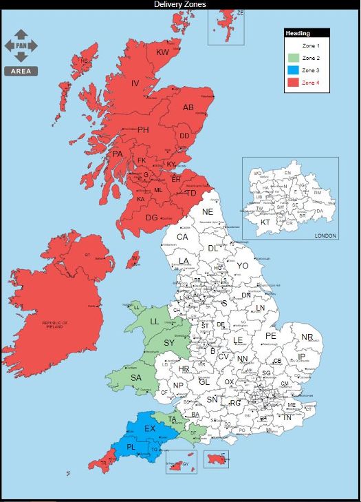 Orders to Scottish Highlands, remote areas of England and some areas of Wales will incur additional delivery costs.