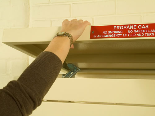 - Top lifts open for checking of regulator and to shut-off valves in emergency
