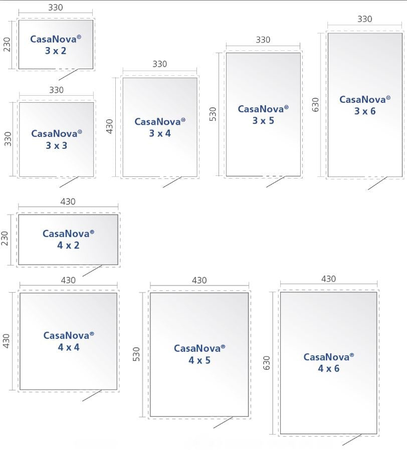 CasaNova is Available in 9 Sizes: