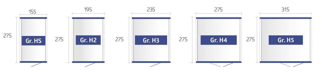 HINT: you can rotate the HighLine® (from size H2 onwards) to suit your own preferences and the standard door can be installed in any side wall.