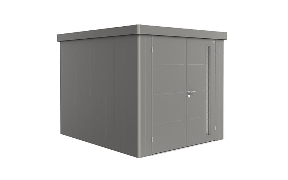 The lightly tinted acrylic glass panel in the standard door make the Biohort Garden Shed Neo a real eye-catcher.