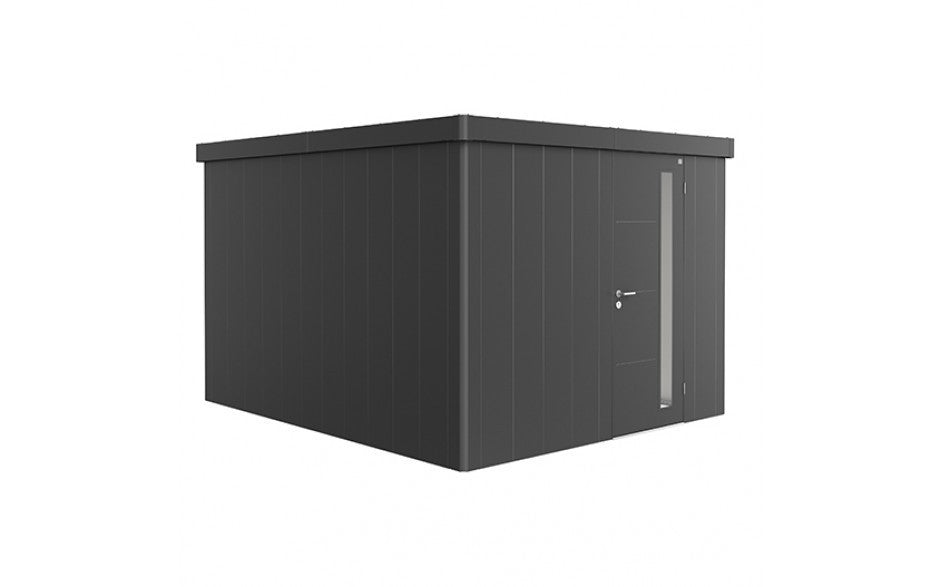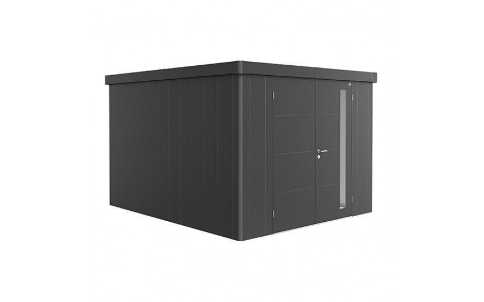 The lightly tinted acrylic glass panel in the standard door make the Biohort Garden Shed Neo a real eye-catcher.