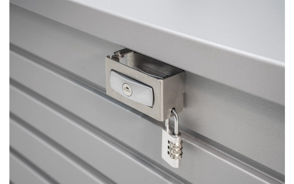 A 3 metre long synthetically covered stainless steel cable with a plastic bead at the end to secure the Parcel Box from theft is supplied as standard.