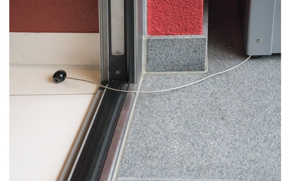 Simply jam the cable between door and frame when closing the door. Thanks to the plastic covering your door is protected against damages. The cable can be shortened if desired.