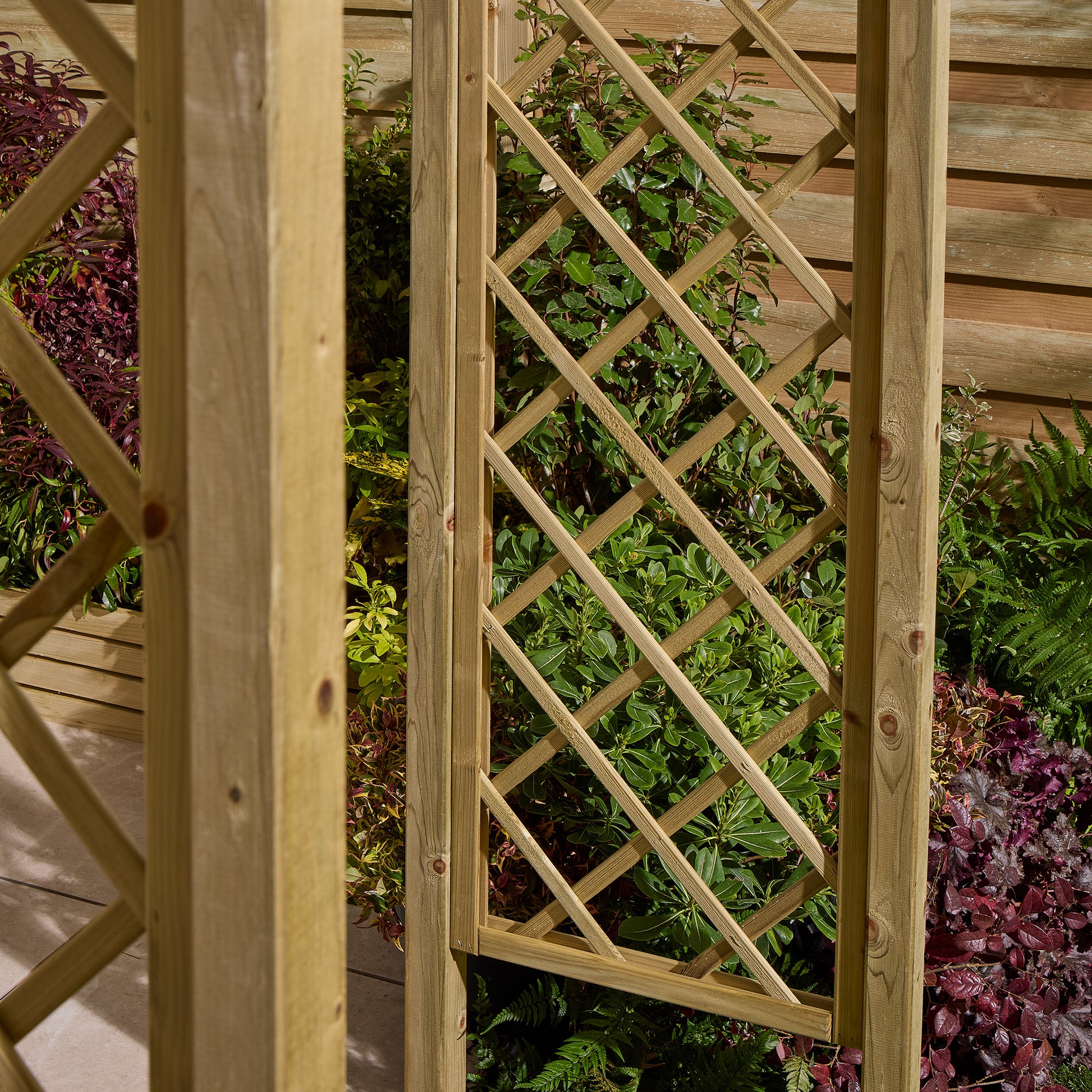 A classic square top arch featuring diamond lattice sides panels and pergola top. Perfect for adding a statement to your pathways. Pressure treated for longevity creating a garden feature that will last for many years.