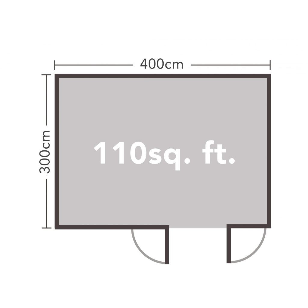 - Apex 4m x 3m log cabin with internal floor area of 110 square feet