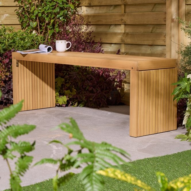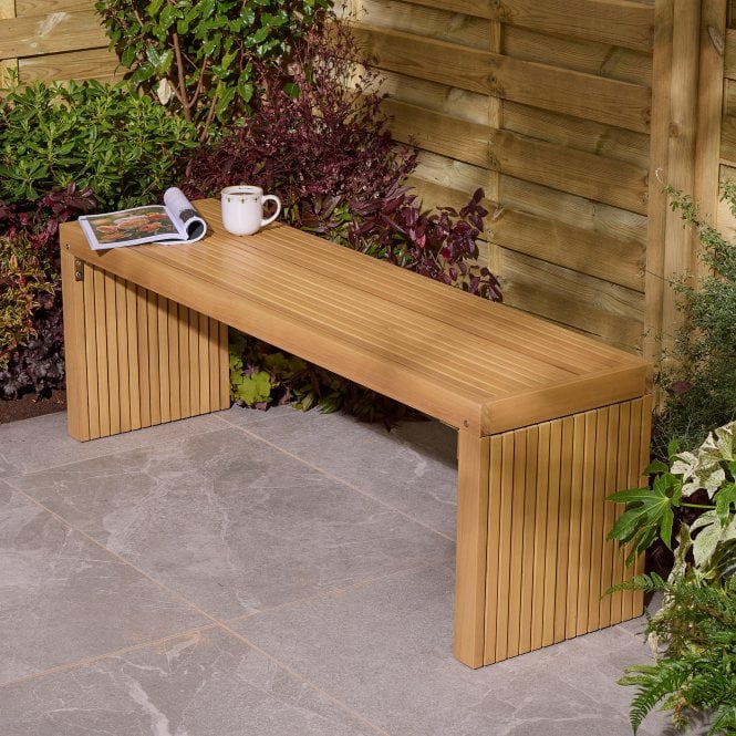 With a bold and contemporary design, the Rowlinson Kyoto 3 Seat Bench provides comfortable seating with a decorative twist. The unique slatted design adds a modern look to your outdoor or indoor space, and the durable Eucalyptus hardwood construction provides long lasting, stylish seating for up three people.