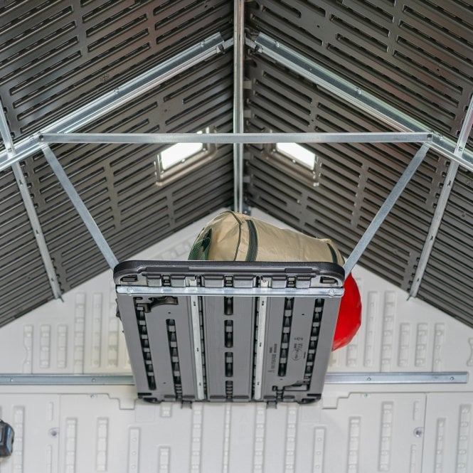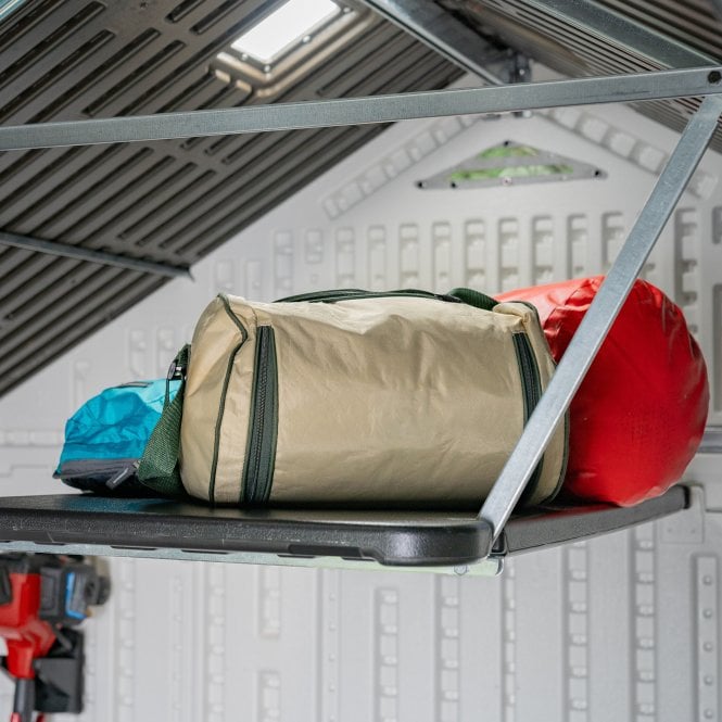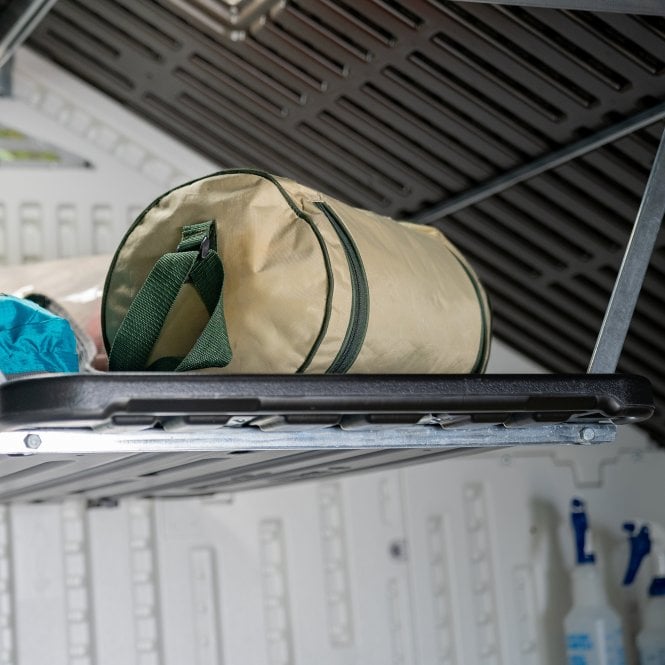 Take advantage of the internal height of your shed by adding the Suncast Loft Shelf Kit. Designed to perfectly fit the Tremont and Vista rage of sheds, this loft kit can hold up to 18kg of your outdoor essentials, including gardening equipment, camping supplies and tools. The kit easily secures to the existing roof trusses of the shed, providing stability, safety and allows you to utilise otherwise unused space inside your Suncast Tremont or Vista shed.