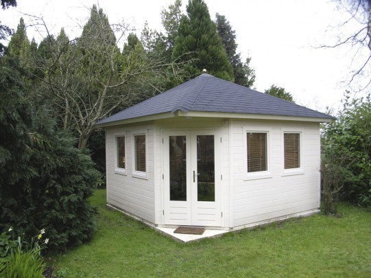 Please Note: These buildings are supplied untreated and need to be treated inside and out as soon as they are installed. We also sell the Lugarde impregnating fluid, stains and coloured paints. A solid concrete base will need to be constructed to the footprint of the building for the summerhouse to stand on - this base needs to be completely level.