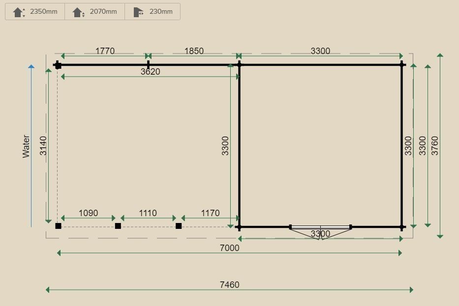 Cabin 3.3m x 3.3m, Canopy 3.3m x 3.6m
