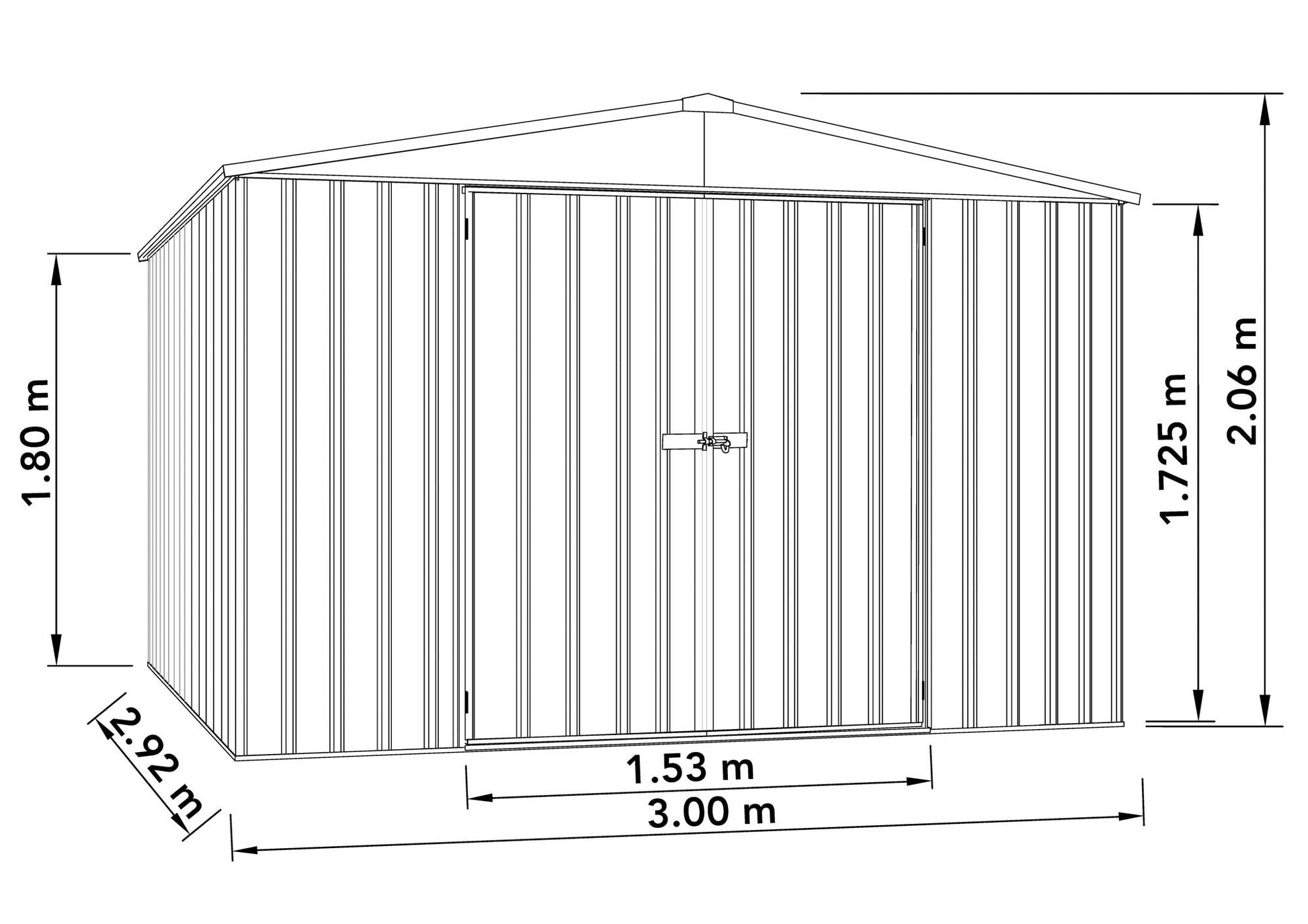 The building simply slots together as it is delivered in pre constructed panels! This shed is made from extremely tough Bluescope steel which is very strong and resistant to rust, even at 1mm thick. The strong steel surrounds a robust metal framework and does not come with a floor. This makes this shed ideal for storing valuable or heavy items and can be padlocked when not in use for added security (not supplied). This metal shed has an apex roof which prevents the build-up of rainwater as well as providing additional storage height and headroom. The Regent is very durable and is designed to withstand many adverse weather conditions. If anchored to the ground this metal shed can withstand strong wind conditions of up to 147kmph. For a strong, safe and secure garden storage solution, this Regent Grey Metal Shed is the ideal building for you. Complete with a 20 Year written warranty against rust and corrosion, you can be sure this spacious storage building will last for many years to come.