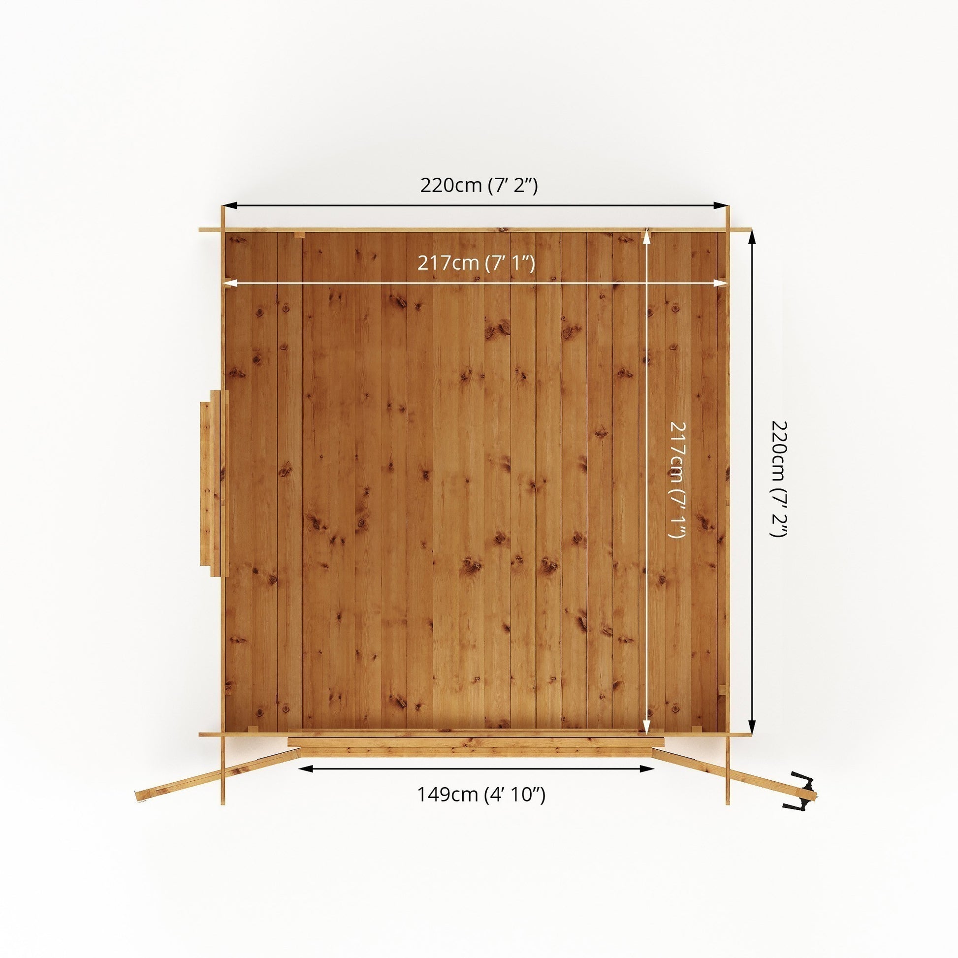 - Floor Width: 7' 2" / 2.2m