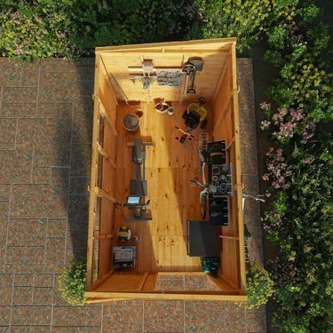 Shiplap sheds are constructed using cladding made of several timber boards stacked to create a seamless panel, with grooves at the top of each board to promote water run-off, keeping the interior dry and airtight. Each of our shiplap sheds is equipped with a tongue and groove roof and floor, providing hard-wearing and robust flooring that can easily handle daily use, making it perfect for workshops or storing heavier items.