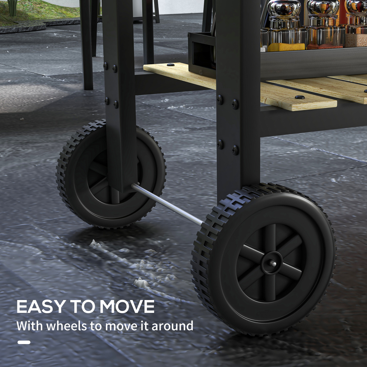 Outsunny Charcoal BBQ Grill with Side Table, Storage Shelf and Wheels
