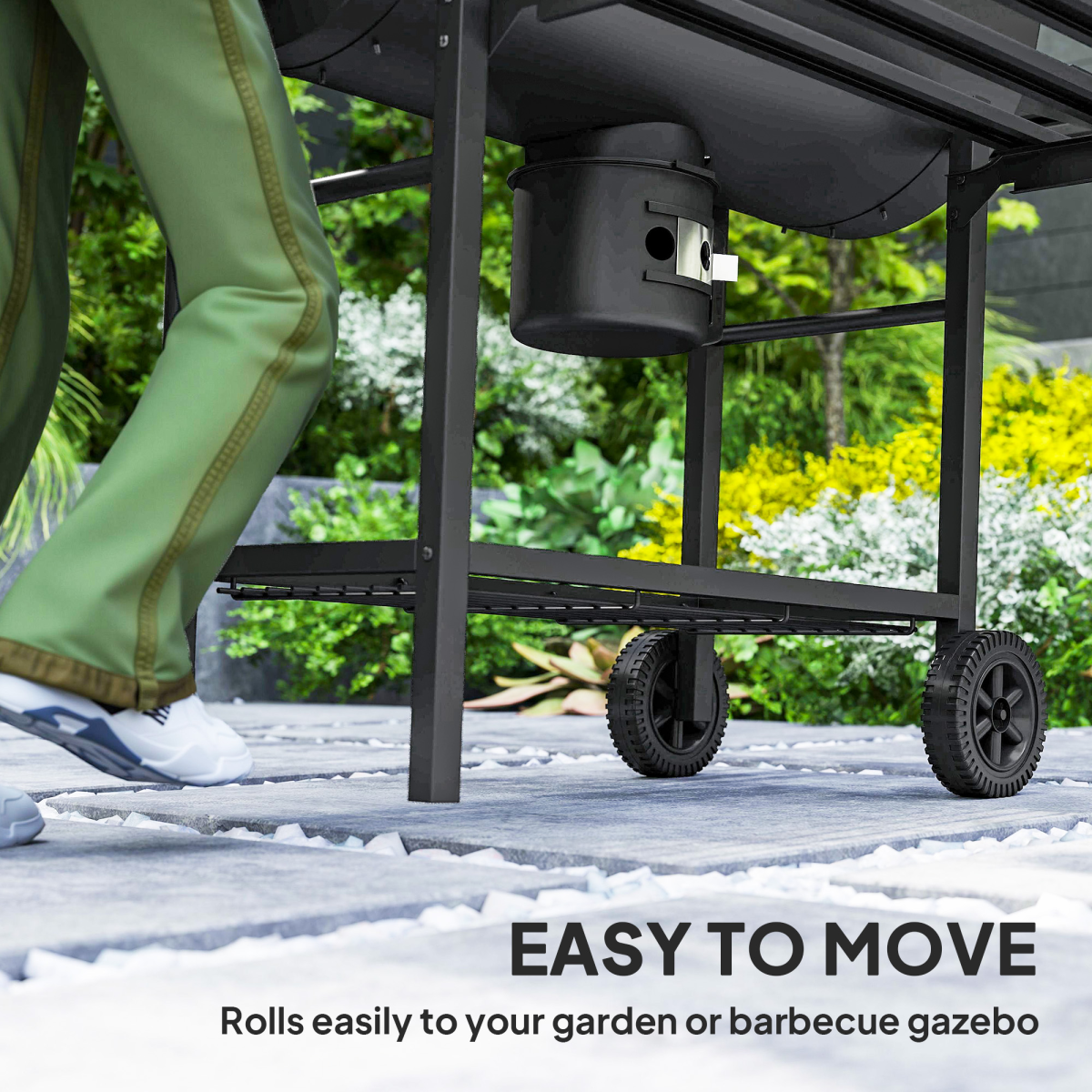 ● Wheels and side handle enable convenient mobility across the garden