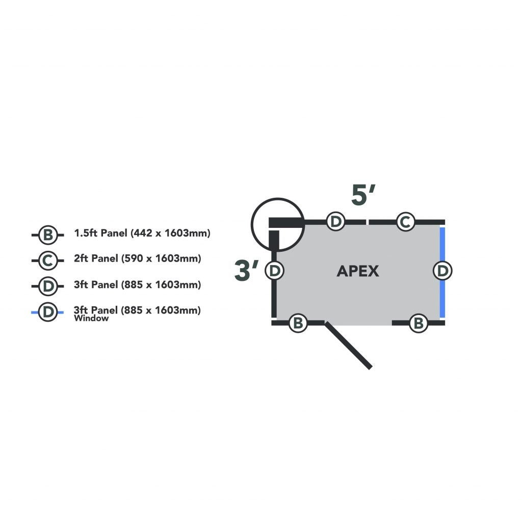 - 8mm solid sheet roof includes weatherproof felt cover.