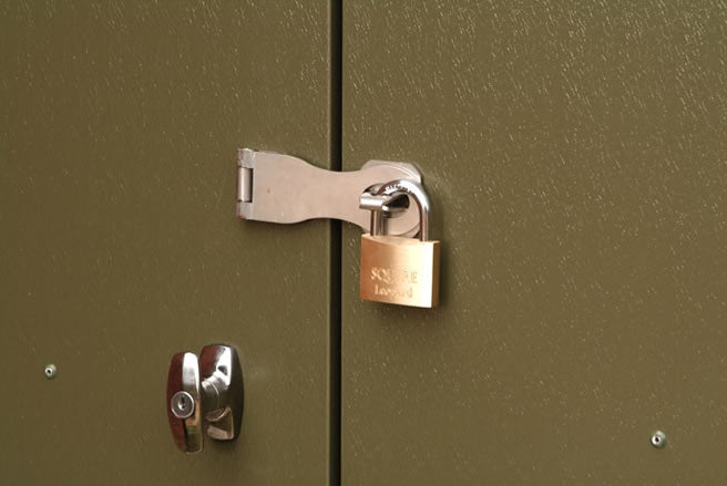 - Lock: Keyed lock with cammed locking bar locating to both top and base of door.