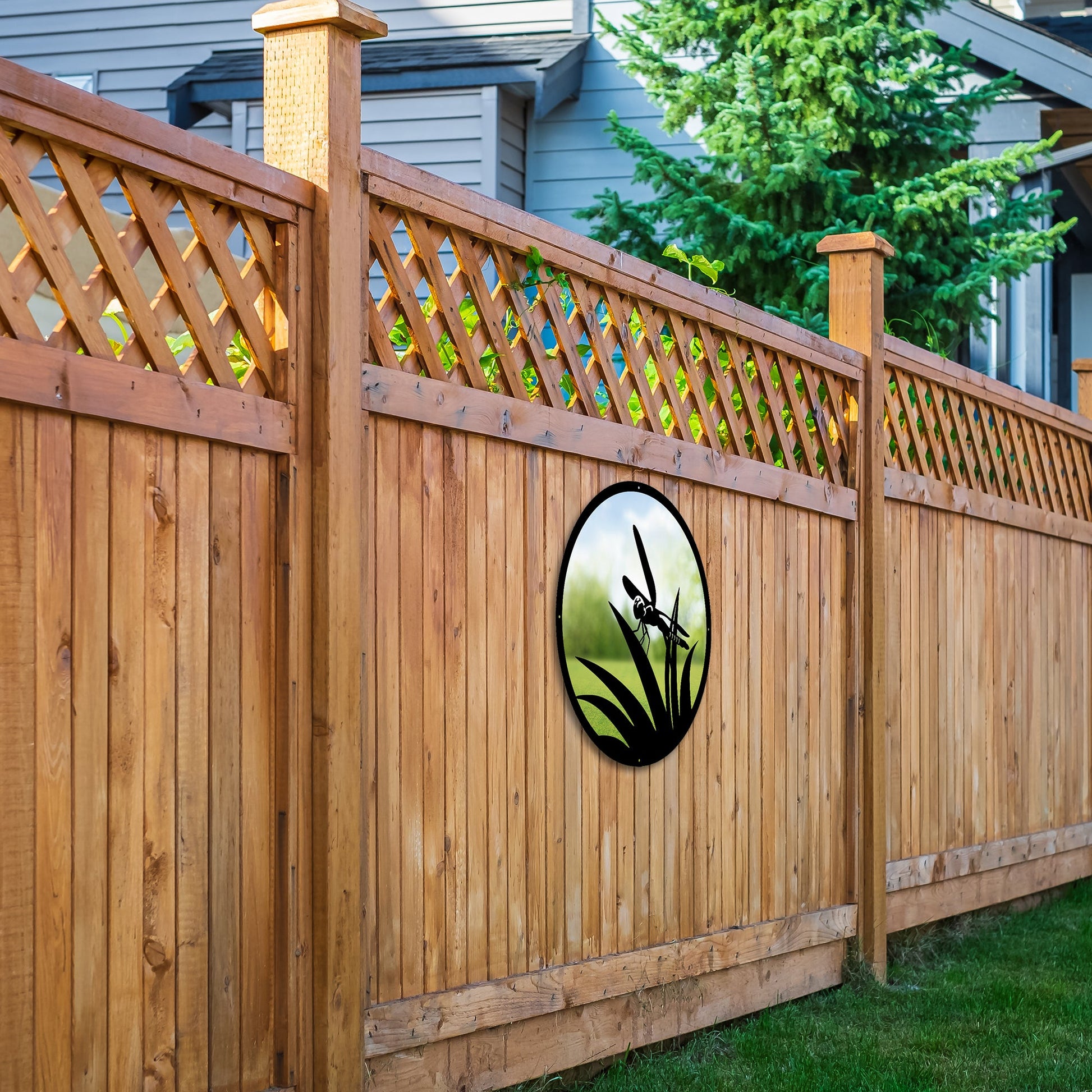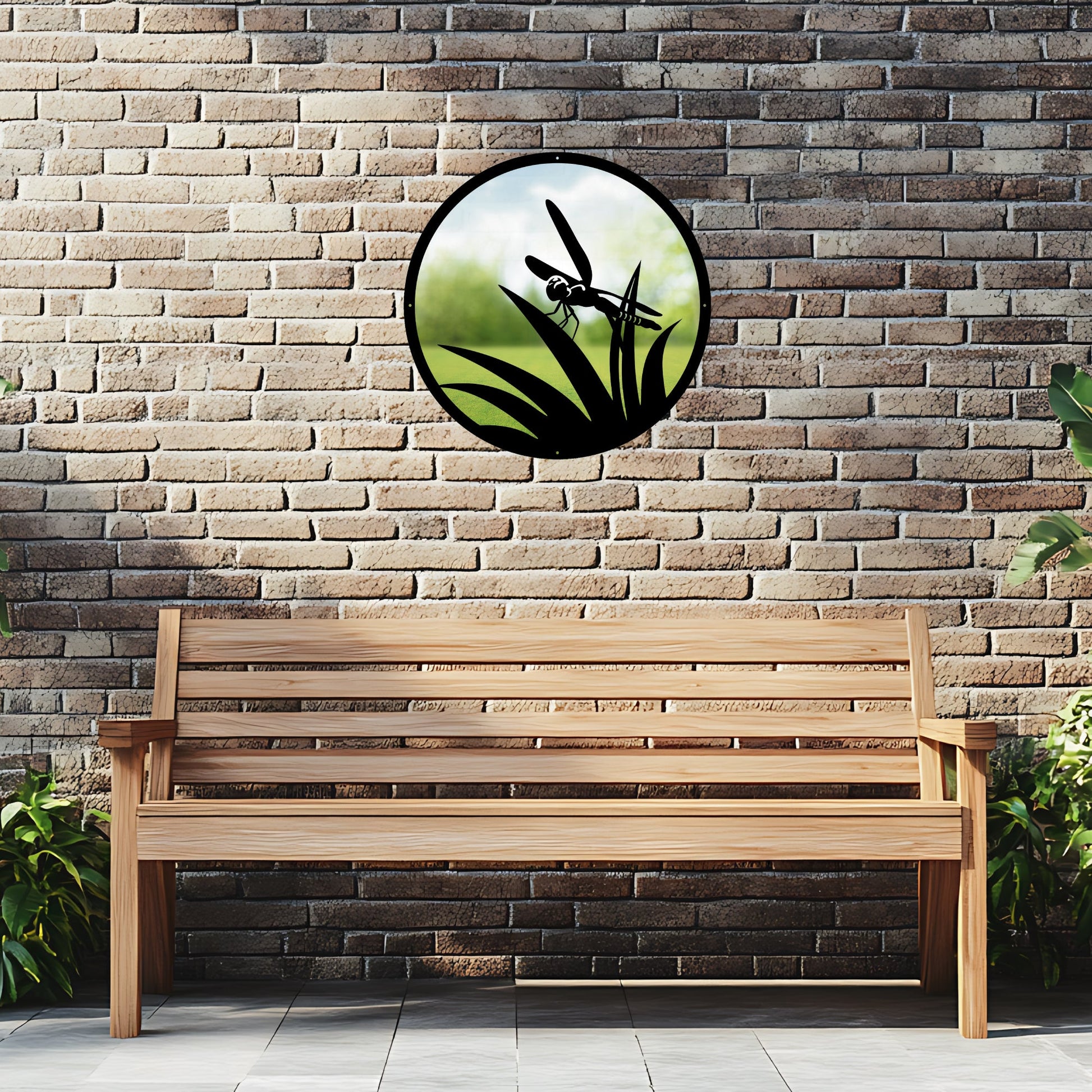 SunCatcher 'Little Dragonfly' Circular Garden Mirror consists of: