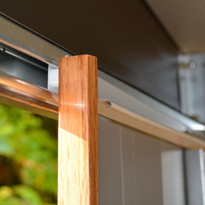 The Woodvale Metal Shed from Rowlinson is designed to resemble a wooden shiplap shed. The coffee coloured wood grain effect will look perfect in any setting. The low maintenance shed is fire and rot resistant. The shed features double sliding doors to the front which are fully lockable.