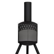 Built from top quality steel with a tough black finish, the fireplace with its high smoke stack is very distinctive as a decorative object but comes into its own during dark evenings when warmth and light are at a premium.
