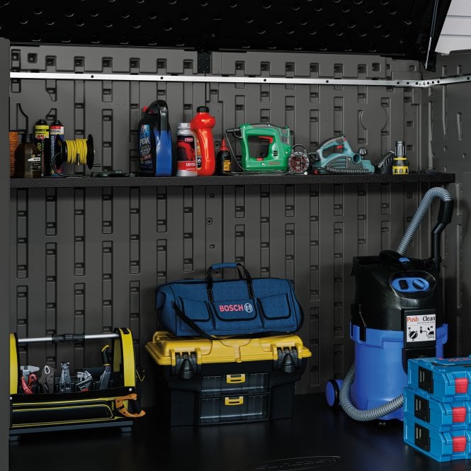Maximise every inch of space in your shed with the Suncast Shelf Kit For Hamilton XL Storage Cabinet / Stow-Away Large Store. Constructed from robust resin, the shelf can hold an additional 23kg of items, allowing you to organise and easily access your outdoor essentials.