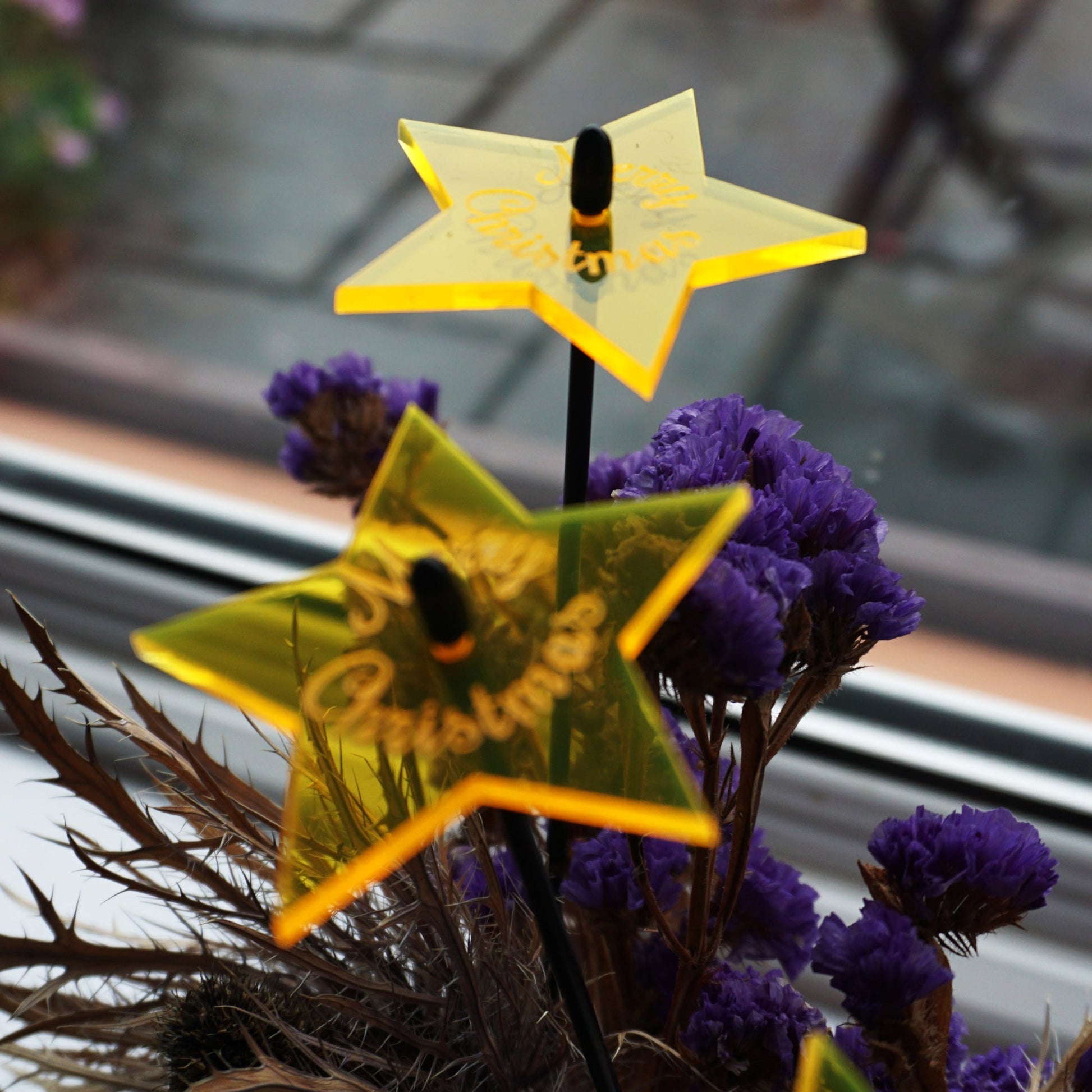 Small Set of 5 Shining Stars with Merry Christmas Message