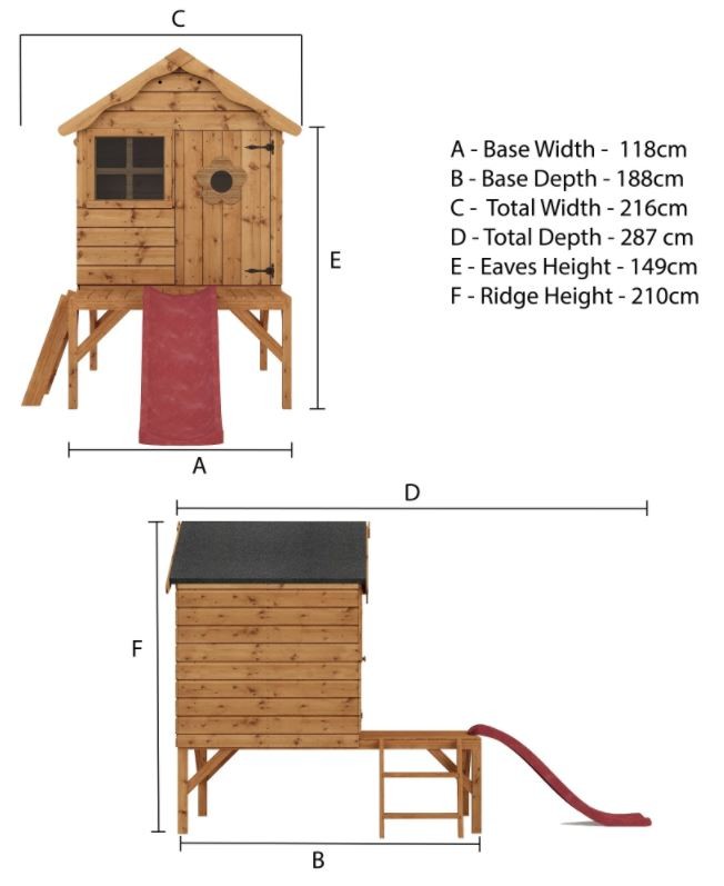 The rustic Georgian style windows use 100% shatterproof styrene glazing, this is a safer alternative to traditional glass and provides protection against potential harm. Robust roofing felt, fixtures and fittings are all supplied as standard, alongside our detailed instructions and manufacturer’s recommendations to ensure a simple, stress free assembly process. This outdoor playhouse can be decorated to suit any theme, to offer countless hours of fun and imagination. All of our playhouses come with an Anti-rot guarantee, to ensure it looks great and lasts the test of time, this playhouse in particular comes with a conditional 10 year Anti-rot guarantee as well as a 12 month manufacturer’s warranty. Annual re-treatment is required to maintain your building and the Anti-rot guarantee. Suitable for children aged 36 months+