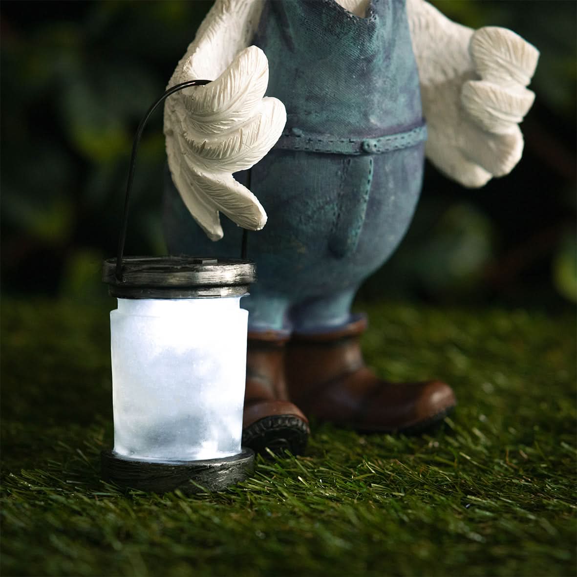 Crafted from hard-wearing, high quality resin, this garden ornament is built to withstand the elements. Its waterproof and UV-resistant qualities ensure that it retains its charm in your garden setting for years to come.This garden ornament is solar-powered, charging during the day using sunlight. The individual solar panel on the lantern stores the sun's energy and lights up the ornament as dusk falls.