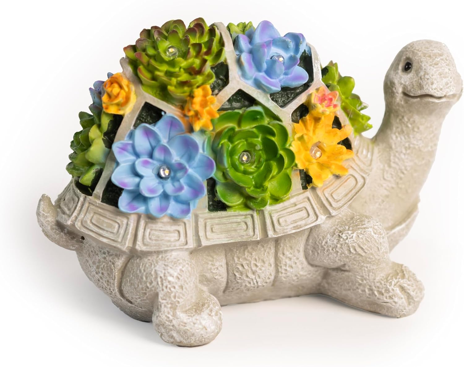 Stone Effect Solar Tortoise Garden Ornament LED Light Up Statue Succulent Decor