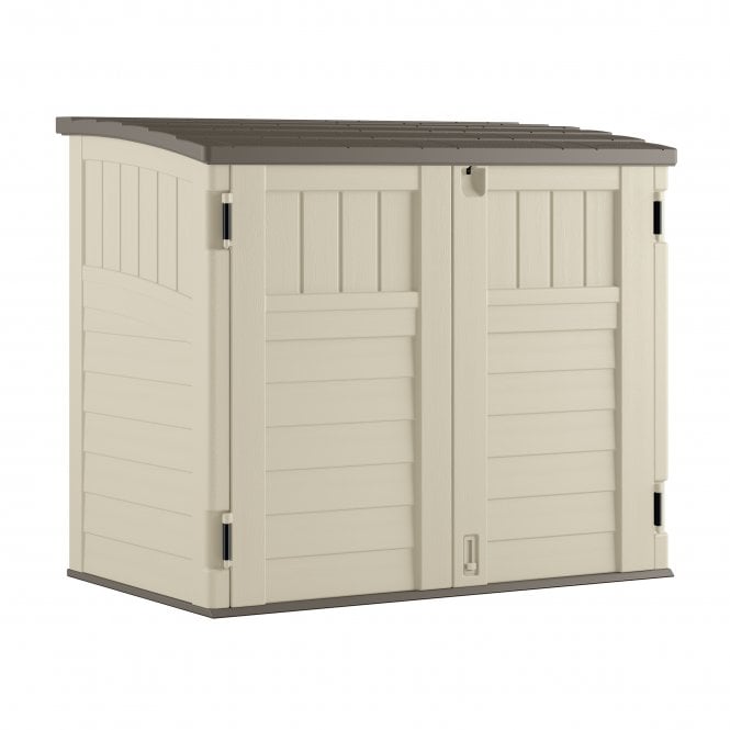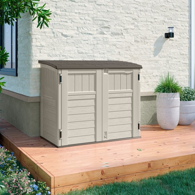 This handy Horizontal Storage Shed from Suncast® can handle any and all of your outdoor organisational needs. Perfectly fits 2 x 240L wheelie bins and Ideal for stowing, lawn and garden products, bicycles, and more, this stylish storage solution is essential in every season. Additional features include durable, multi-wall resin construction for year-round strength and stability, a reinforced floor for heavier items, a 3-door locking system for added security, and a sleek, low-profile design that fits neatly in many spaces.