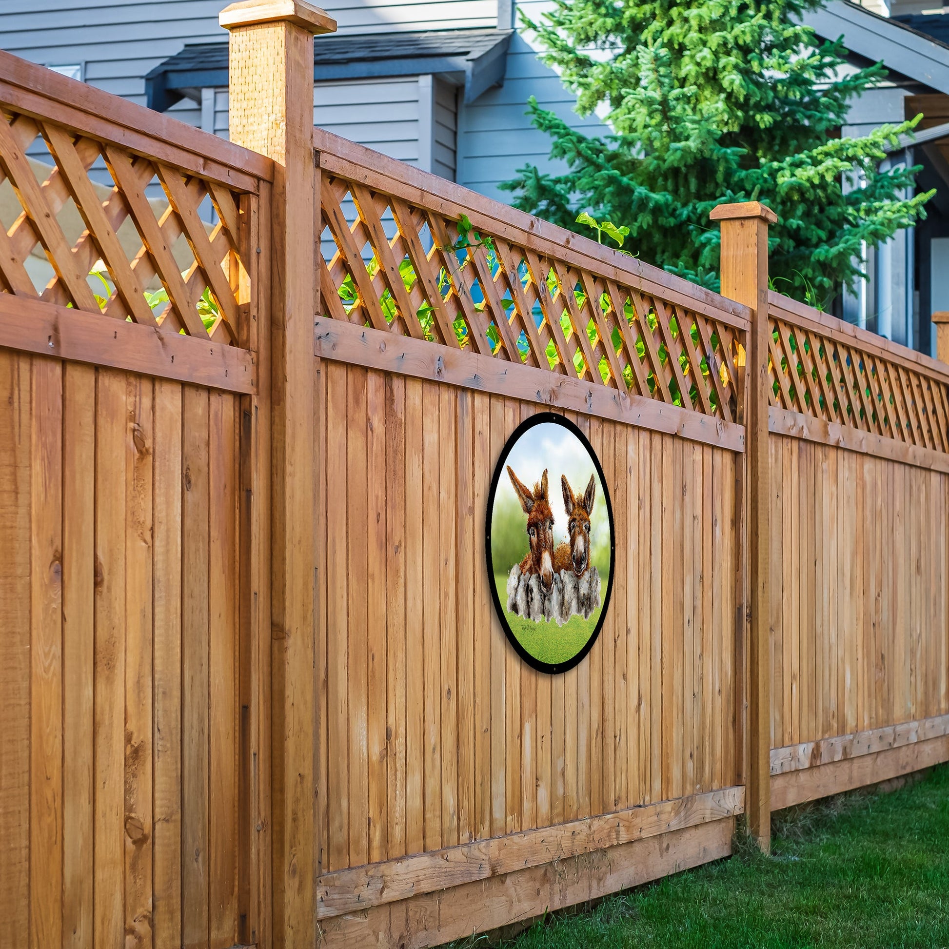 Barney and Fred, Two Lovable Donkeys, SunCatcher Garden Mirror – 33cm Round by Bree Merryn