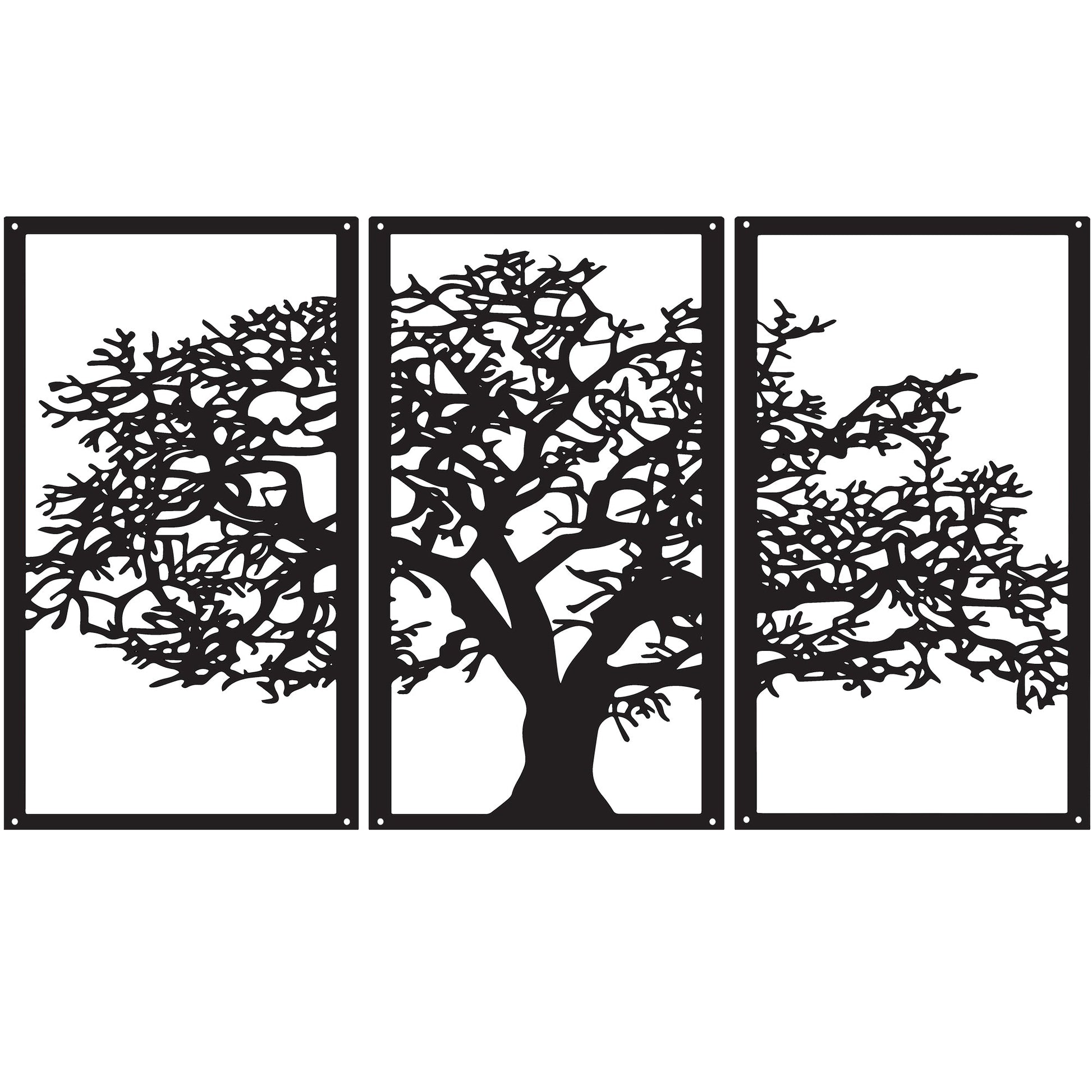 This set of three rectangular panels, Three Panel Tree, makes a distinct addition to your home space, with the three panel Tree, in silhouette, creating a distinctive wall art feature and a sense of nature. These lovely wall art are made from acrylic so they are a lightweight, resilient, rust free, long lasting addition to your home or they make a lovely gift for a new home or gardener. Great for adding depth to any outdoor or indoor space.