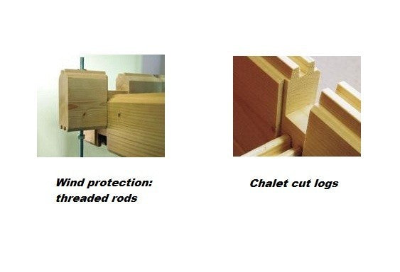 The Helena Superior Garden House is manufactured with Nordic Spruce Wood and has chalet cut logs which are specially designed to give extra protection against wind and rain, further wind protection is achieved thanks to the threaded rods which are inserted through the logs.