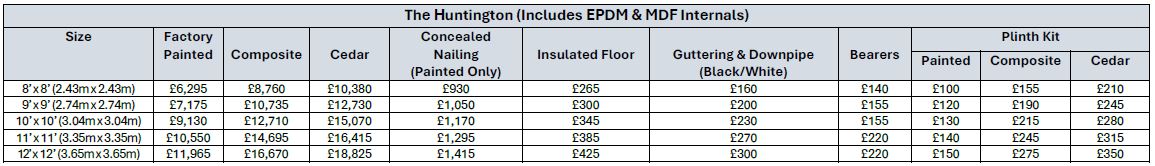 Base building prices start from £6295, depending on size and configuration, you must add onto the price doors, windows and other considered options, which are all priced separately. Orders will not be processed until all options have been discussed and confirmed in writing.