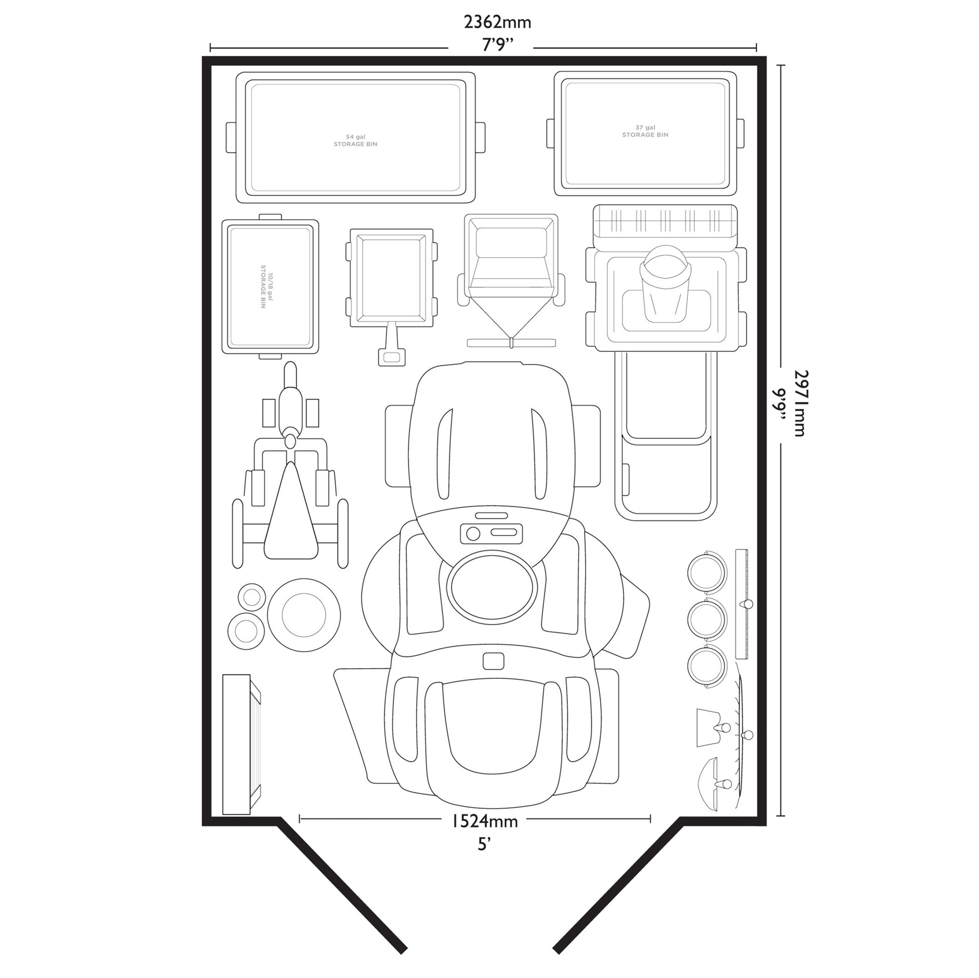 - Two adjustable corner shelves included for additional storage space