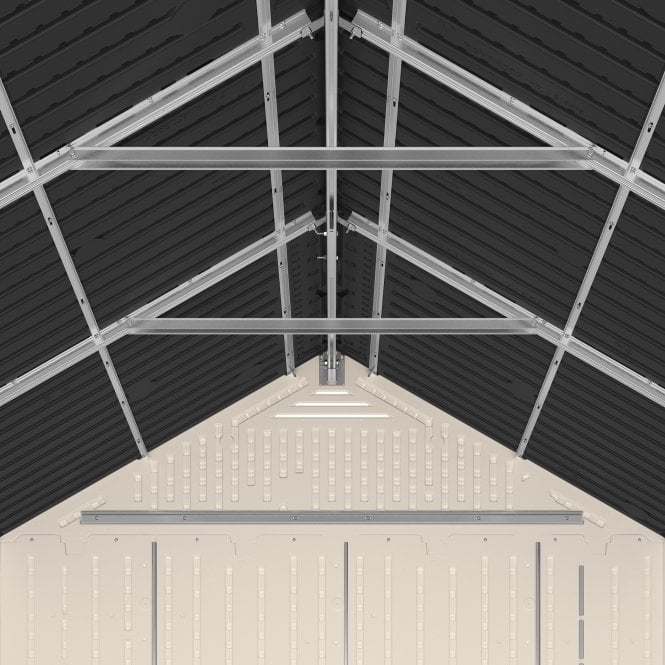 The 7 ft. x 10 ft. Vista® Storage Shed can accommodate all of your storage needs from gardening tools, bicycles, ride on lawn mowers, outdoor equipment, and more. The double doors with metal hinges allow you to access your items easily and are pad-lockable to keep your contents safe and secure (lock not included). Constructed of metal reinforced, multi-wall resin panels, this sturdy shed is weather resistant and built to last.