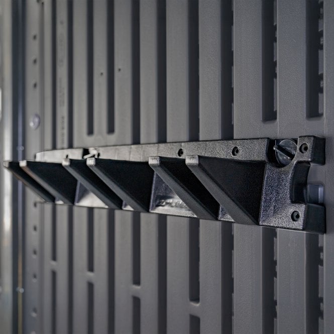 Keep your awkward long handled tools stored away neatly and ready for use with the Suncast Triple Hook Long Handle Tool Hanger Set. Each hanger can hold multiple tools to help maximise your space and prevent tools from falling. With a durable one-piece resin construction, and sold in a useful pack of two hangers, your shed and tools will always be organised.