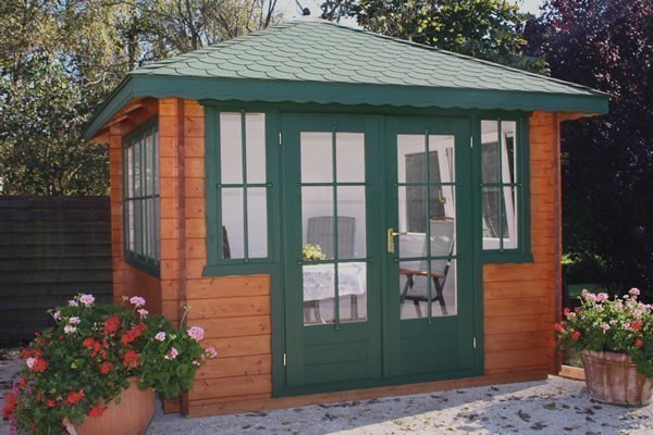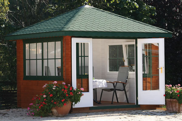 This Valencia log cabin is a perfect outdoor building for any garden. To the front there is a set of double doors which are extensively glazed. To each side of the door there are smaller windows providing an attractive finish to the front. Both sides of the pavilion are fitted windows for a light airy finish.