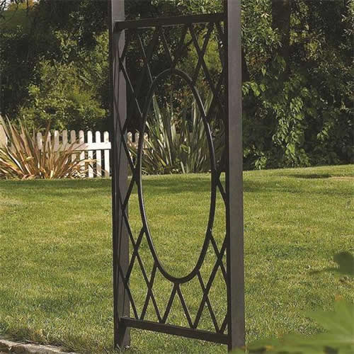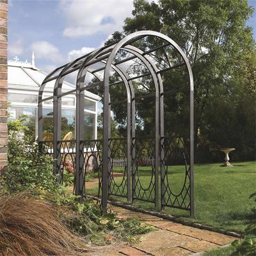 A new product available within the Wrenbury range from Rowlinson. Maintaining the contemporary style, this arch with rounded top features beautiful lattice detailing. With a steel construction, the arch has been powder-coated to give a metallic gunmetal grey finish. Perfect for creating an attractive entrance to your garden or walkway.